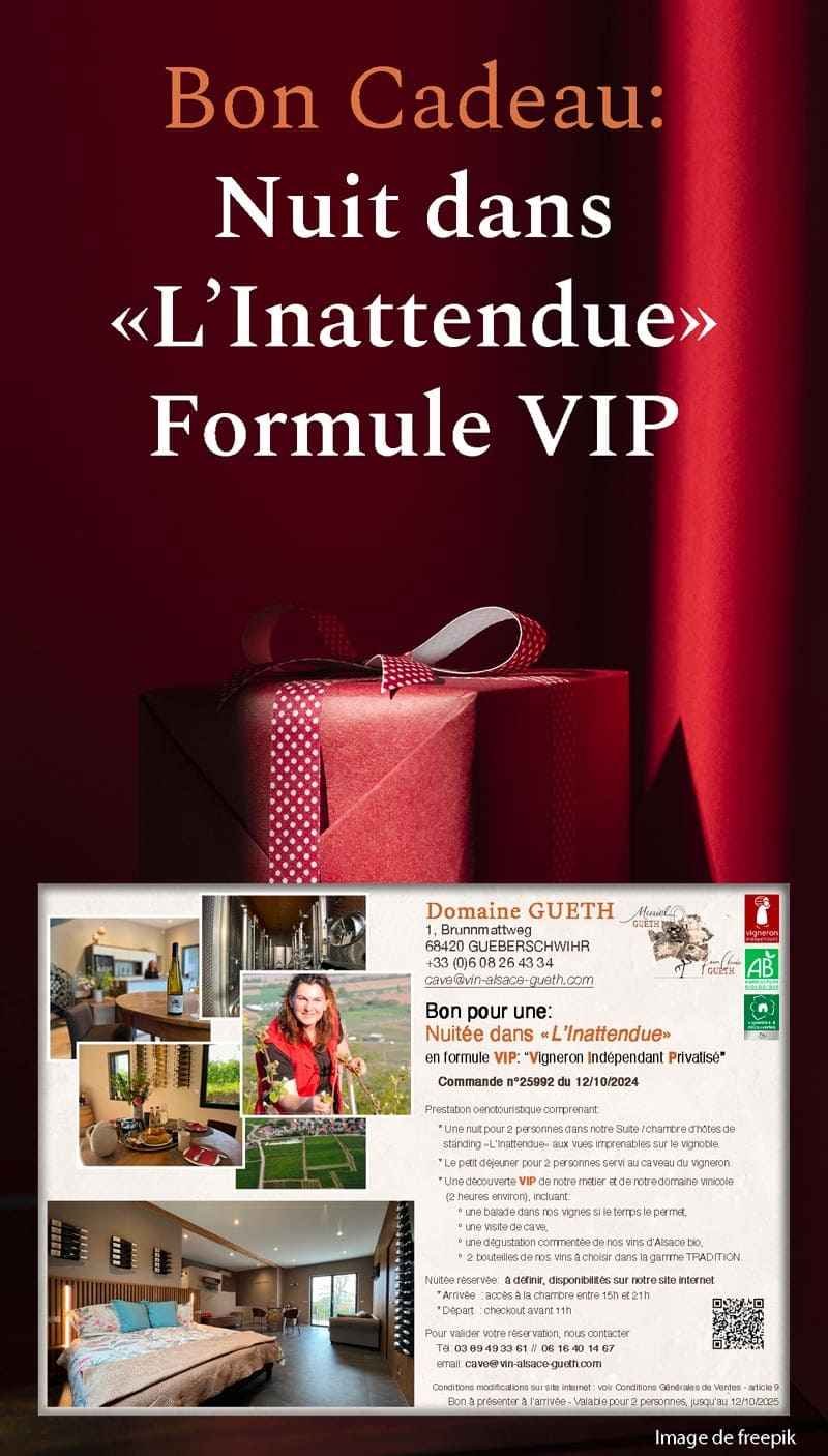 - Nuitée dans notre suite / chambre d’hôtes Premium « L’Inattendue » au cœur des vignes avec terrasse privative et vues directes sur le vignoble et nos Grands Crus